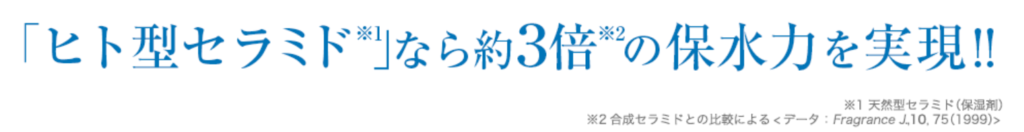 しかも冒頭の画像をよく見ると、「ヒト型セラミド」に注釈をつけて、天然型セラミドって書いてありますよね?